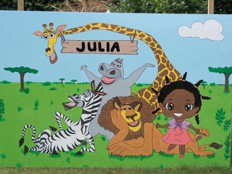 Voor het maken van de muurschilderingen, de decoratieve afbeeldingen op hout en de geboorteborden maakt Arti Bambini gebruik van moderne technieken. Met een beamer worden de afbeeldingen op de muur of op hout geprojecteerd en overgebracht. Op deze manier wordt de afbeelding identiek aan het gekozen voorbeeld. Alle afbeeldingen die “gestileerd” zijn, zijn geschikt als voorbeeld. Dit kunnen bijvoorbeeld tekenfilmfiguren zijn, of knuffeldieren. Ook foto’s van voorwerpen, speelgoed en in sommige gevallen zelfs echte huisdieren kunnen als onderwerp gebruikt worden. Zelfs eigen tekeningen en ontwerpen zijn mogelijk! Kijk hier voor meer muurschilderingen.